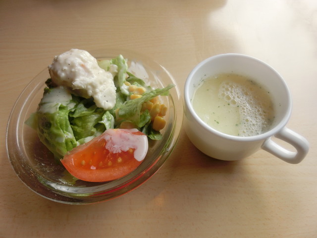 テーブルに置いてあったメニューからダブルは量が多いからシングルにしようと決めて洋風セットを選び、ソースはオニオンがいいと意見が一致して、このソースがとっても美味しかったので、2人とも大正解で、真剣になってボリュームがある「しんけんハンバーグ」をきれいにたいらげました。