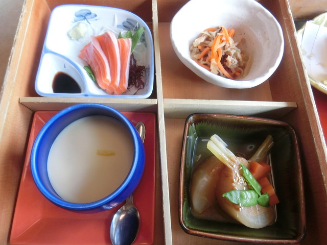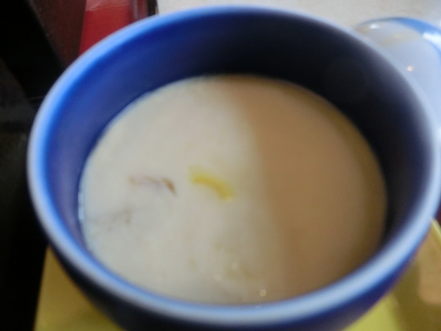 それから、前から相方が気づいているのですが、貝汁に入っている貝の数がいつも5個で、増えることもないし減ることもありません。厨房で鍋の中の貝をお碗に入れる時、お玉で素早く5個をすくい取っているのでしょう。これって、神業ですね?