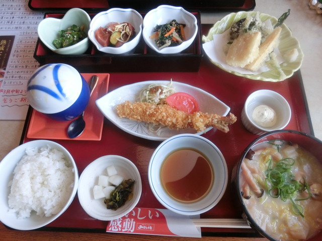 活気のある食事処で料理が出来上がるのを待つ時間はなんとなく楽しいネと言い合えるのも、あいにくお休みで顔を見られなかった店長&料理長さんがいるみほり峠下松店ならではの人気だからなのでしょう。そして、食べるたびに「これは美味い」と3回も口にしてからさらに「きっと料理長さんの自信作に違いない」と口にしたのは、お膳の左上の角の小鉢に入っていためんたいポテトサラダ。ぜんたいにさわやかサラダ。確か家の冷蔵庫にカラシめんたいがひとかけらだけ残っていたからさっそく作ってみようと思いました。