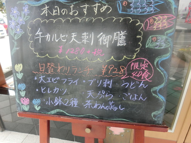 4月27日(金曜)は月に1度の日替わりSPランチです。前の月から27日の空欄に赤色◎を書いている居間に吊るしたカレンダーの当日に突然用事ができてしまい、「今日は行かれんだ~!」にならなくて2人ともハッピーでした。