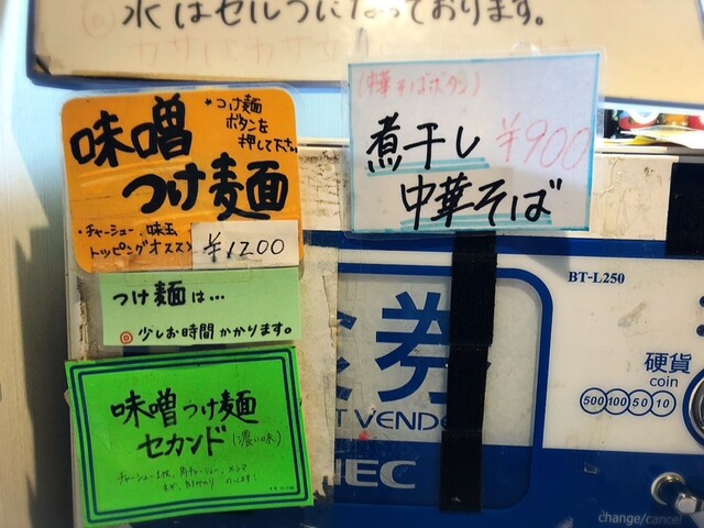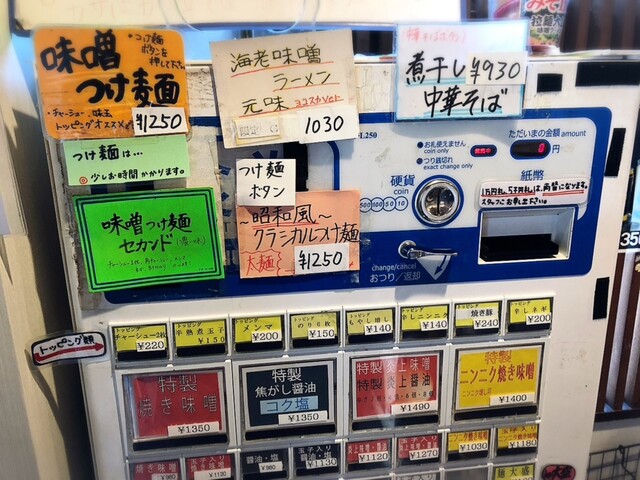 焼き味噌は勿論だが、焦がし醬油、コク塩、曜日限定の坦々麺や海老味噌など多種多彩なメニュー。どれもパンチが効いており美味しい。おすすめトッピングはもやし増し。