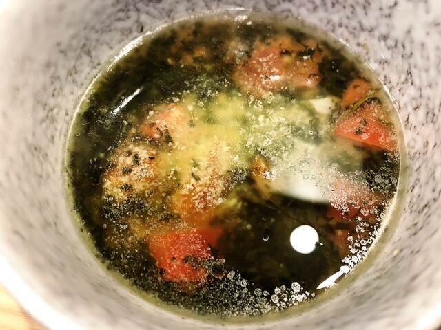 【限定】トマトとバジルの塩つけ麺、シメのリゾット