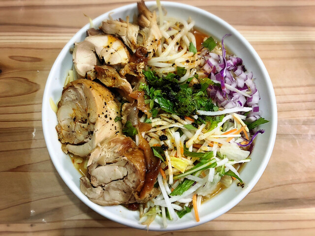 程良くピリっとした自家製ラー油、紫玉葱などの食感もアクセントになって最後まで飽きずに完食。
