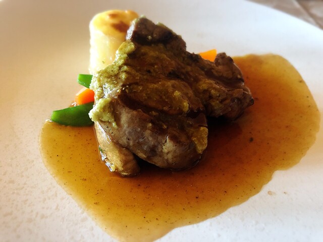 嫁さんが大好きな海老。追加料金が発生するので多少は躊躇するかと思ったが、嫁さんは即決。結果的に大正解。大ぶりのオマール海老は食べ応えあったようだ。少しだけシェアして貰ったが、そのソースだけでも海老海老してて美味しかった。