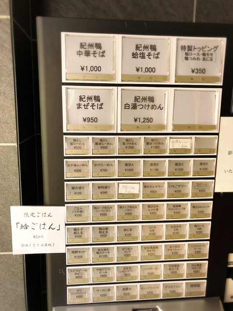嫁さんは「紀州鴨まぜそば」950円に追加トッピングやら限定ごはん「蛤ごはん」450円やらを楽しんでいた。これで鴨欲も満たされたとのこと。