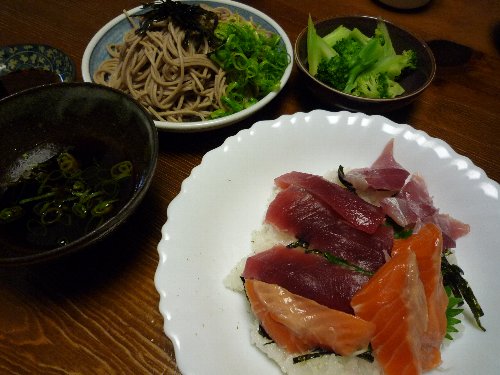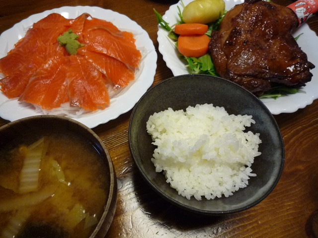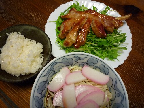 豚骨付きロース肉の照り焼きと冷やしうどん