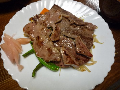 焼肉と豚タン焼き、野菜炒め添え (2010/09/25)
