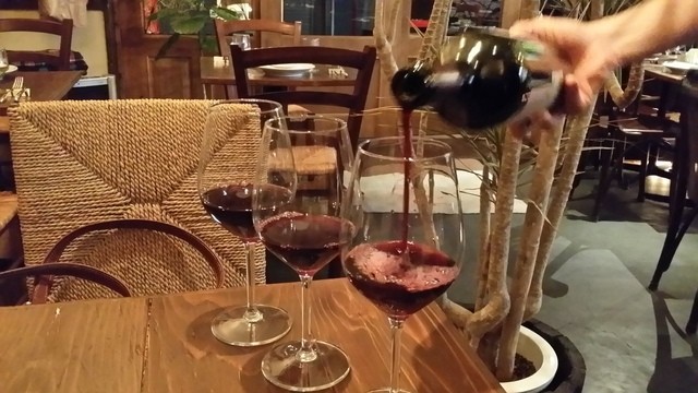 (2015年12月夜再訪)お手頃の赤ワインをボトルで開始した。