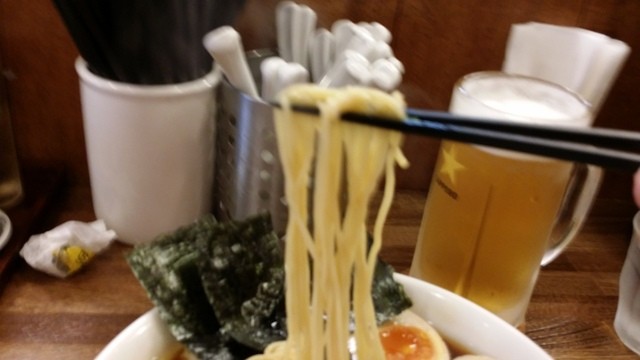 肝心の羽田製麺特製の細ストレート麺は、スープとの絡みは良く、もっちりした食感を楽しめた。