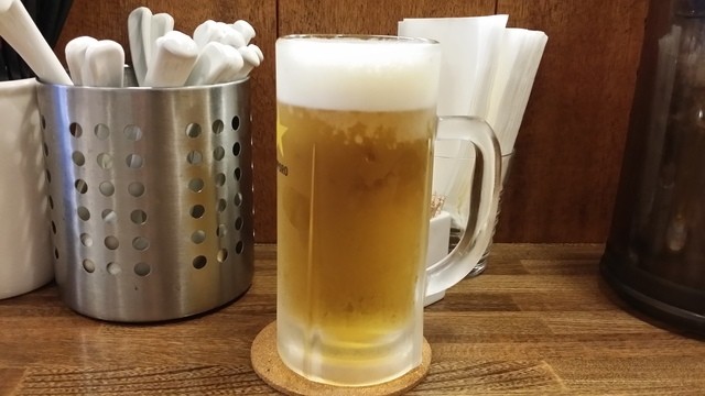 (2016年6月再訪)生ビール(520円)で、渇きを癒やそう。