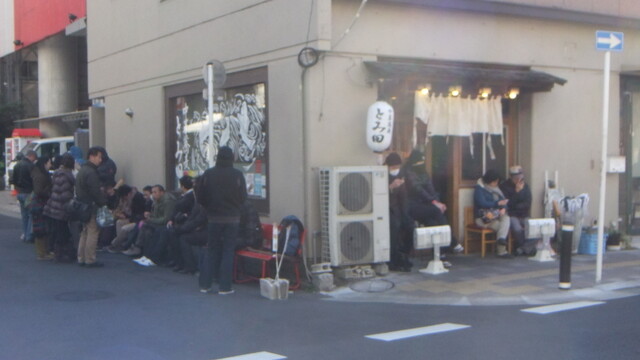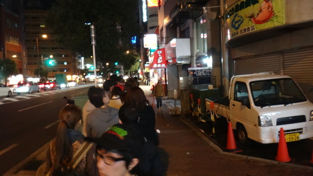 土曜日の18時頃に来店です。10人待ちくらい。(店を出る時には20人くらいの列になっていた)意外と開店は早くて15分くらいで席につけました。