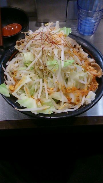 トッピング・・4 ヤサイはモヤシがほとんどだが、みずみずしく美味しい。豚肉はまあまあいけます。