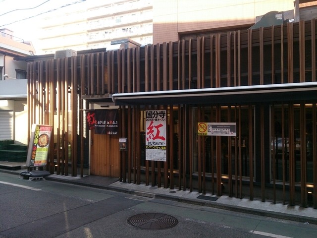 府中本町から歩いていきました。府中駅からは歩いてすぐですが、府中本町からは10分くらい歩きます。府中駅側から歩いてきたら、黄色い看板がありましたが、店は、同じ建物内の左右に系列と思われる店が2店並んでいて、最初間違いそうになりました。口コミにも少し書いてあったので、口コミを見てなければ間違えていたかもしれません。