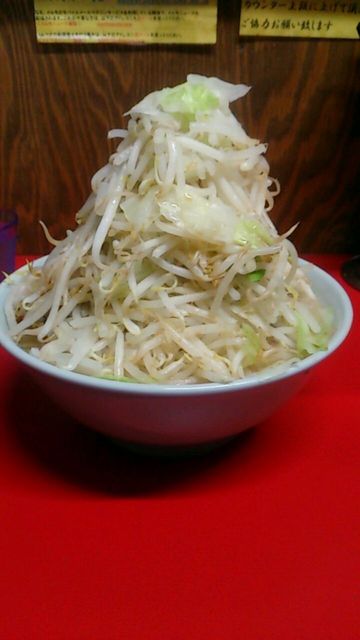 トッピング・・3.5 野菜はもやし中心です。タワーになっていていい感じでした!写真映りもいいですね!豚肉もまあまあうまいです!