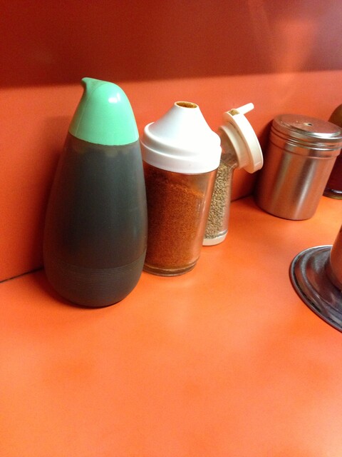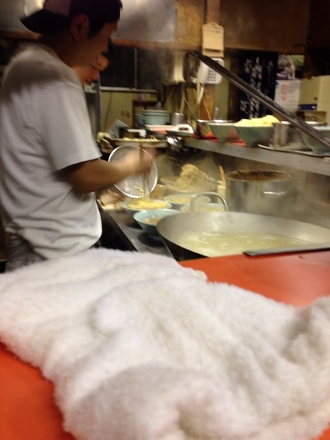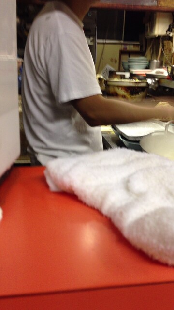 レンゲとおしぼりは、水の横に準備してあり、自分で取りに行く方式です。