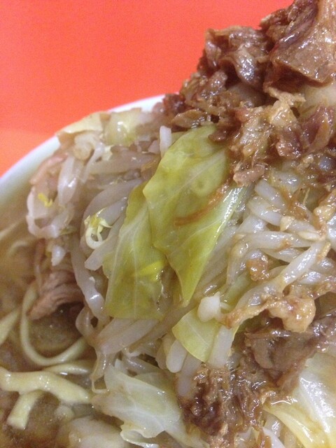 「ニンニクは?」に、野菜マシにしておきました。二郎なら必ずコールする「カラメ」は、この店にはないようです。