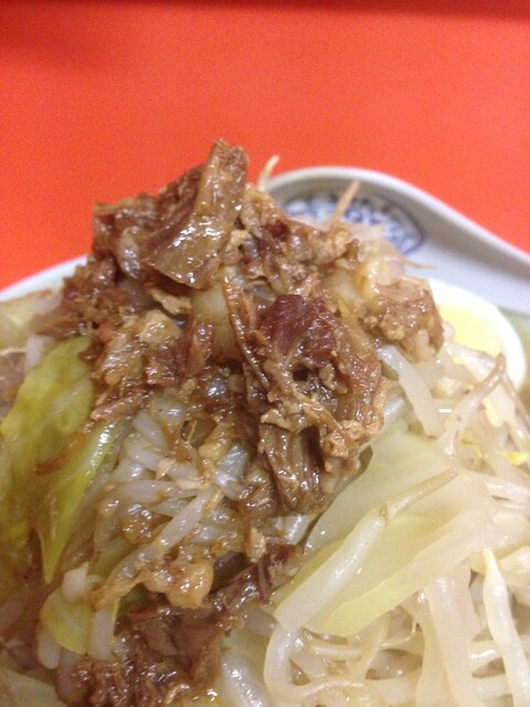 麺・・4 二郎的なやや太麺で、少し縮れな麺です。カタメコールをしたおかげで、更に、いい感じでした。