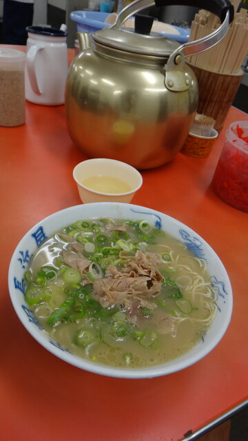 市場的な雰囲気でした。味だけ見ると、とても全国有数な感じはしませんでしたが、雰囲気的に、「これぞ博多ラーメン」「地元民に溶け込んでいる」という感じはしました。人気の理由は、雰囲気にあると思いました。ラーメン好きは、一度は行ってみるべき店だと思いました。
