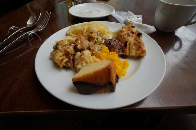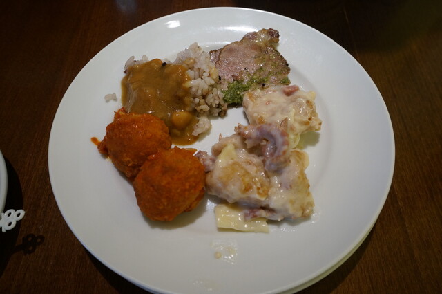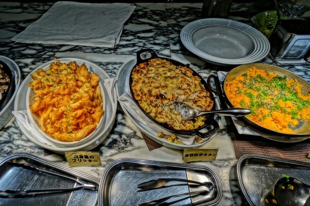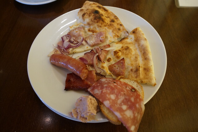 そんなに店が大きいわけでもないので、食べ放題の種類は、あまりありませんが、全てクオリティが高いです。生ハムとかピザとかうまいですね。ピザは、釜戸で焼いてくれている姿が見えるので、気分も上がります。