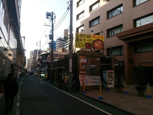 府中本町から歩いていきました。府中駅からは歩いてすぐですが、府中本町からは10分くらい歩きます。府中駅側から歩いてきたら、黄色い看板がありましたが、店は、同じ建物内の左右に系列と思われる店が2店並んでいて、最初間違いそうになりました。口コミにも少し書いてあったので、口コミを見てなければ間違えていたかもしれません。