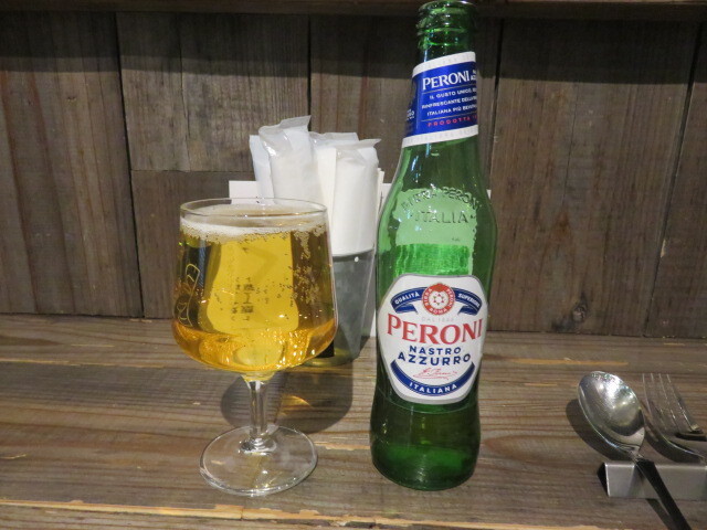 まずは、イタリアのビール、ペローニで始めます。これがあるのは長岡ではここくらいなのでは?嬉しくなりました。
