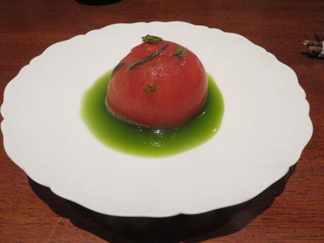 燻製にしたトマトから取ったトマトウォーター(トマトの出汁)を使っているのかな?