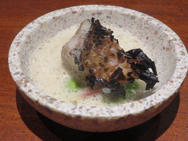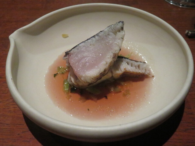 紫蘇を使うのは、今風のフレンチにも見られる技法。さっぱり感とほのかなスパイシーさが魚に良く合います。生くさみを上手く抑えられています。