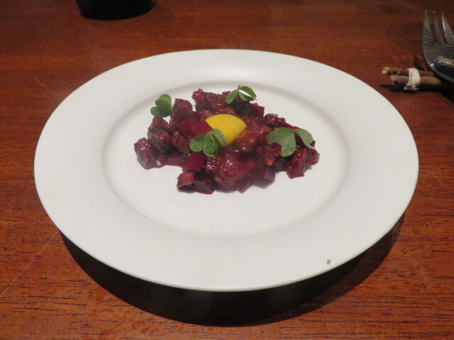新潟蒲原牛とビーツのタルタル。