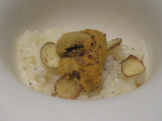 新発田産の米をリゾットに。雲丹を添えて。