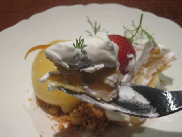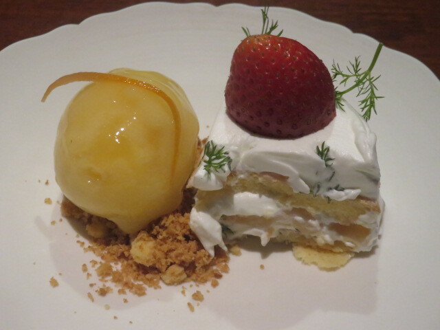 デザートは、ルバーブと焼きミルクのアイス。