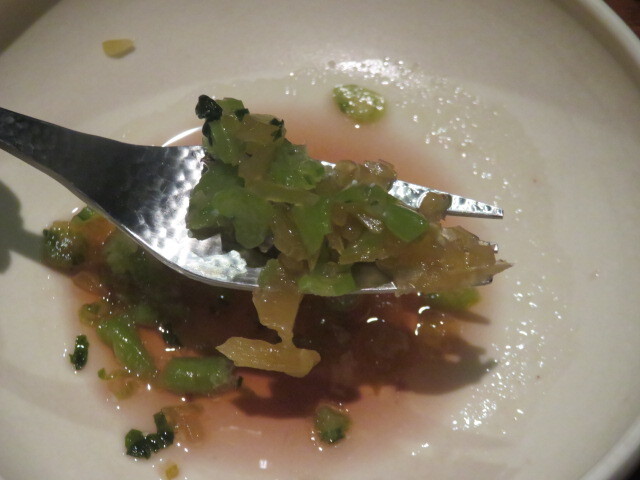 下に敷かれたハーブのルバーブは、どことなく和食のずいきのような。