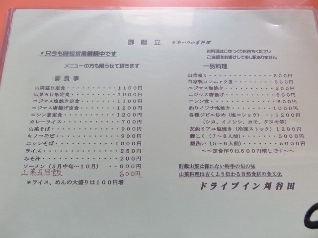 【山菜とジビエの食堂】ドライブイン刈谷田 @長岡市
