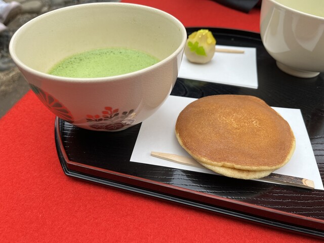 【感想】六義園内の甘味処にお邪魔しました。祝日という事もあり結構並んでいましたがタイミングが良かったのか10分ぐらいで座る事ができました(テイクアウトは並ばなくていいです)庭園を見ながらのどら焼きと抹茶、少し曇っていたけど天気の良い日でゆったり過ごすことができました!多分六義園に入る列が一番のハードルだと思います笑