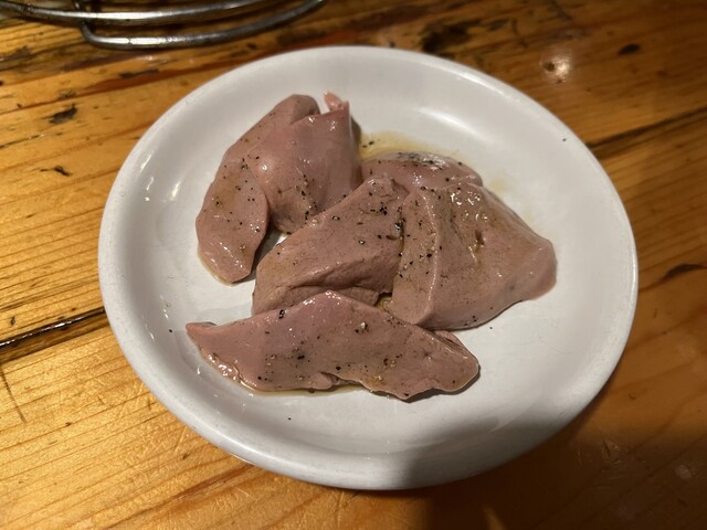 【感想】またもや中目黒の名店を発掘!今回はホルモン系なのですが、飲み放題コースに生ビールやちょっと珍しいお酒が含まれていてコスパ高です!ご飯も当然美味しく、どれもお酒が進んじゃう危険性を秘めてます笑。目玉のホルモン盛合せも印象的なのですが、珍しさも兼ねて今回の衝撃一品はアンチョビおにぎりですね~。締めに出てきたおにぎりはしっとりしてて、アンチョビの香りがお腹いっぱいのはずなのに食欲を刺激。不思議とお腹を落ち着かせてくれるデリシャスな締めでした!終始混んでいたので予約推奨、またお邪魔させてください~