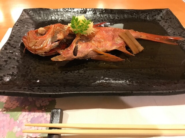 ✔️朝食では、伊豆の名産・金目鯛の干物や、本鮪の山掛け、海老のエキスが詰まった赤出し...