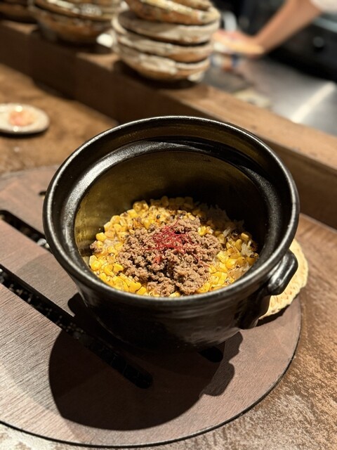◆ 季節野菜と但馬牛の土鍋ご飯(とうもろこし×山椒)