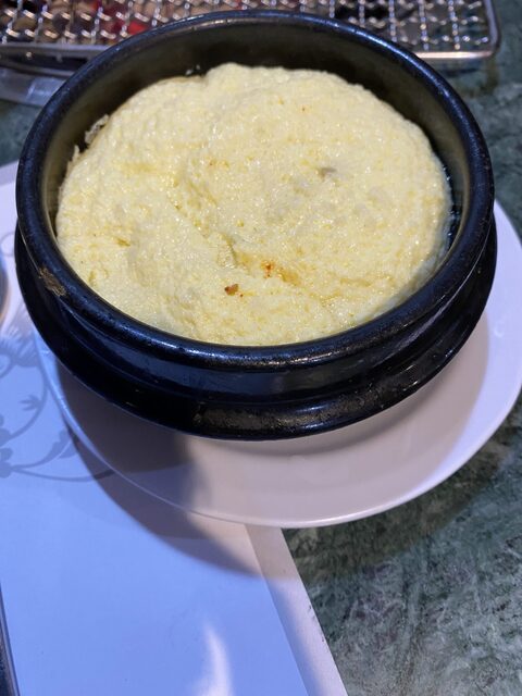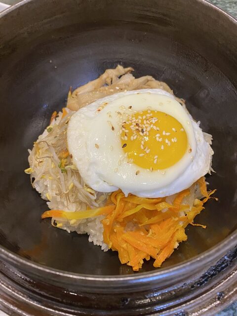 石焼ビビンパは正直イマイチ。写真だと分からないですが、ナムルの下に大量のコチュジャンが入っており、味がコチュジャンに支配されてしまいます。