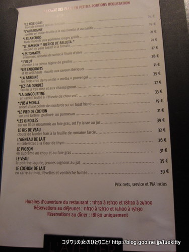 メニューがフランス語であせったけど、英語でメニューを説明してもらい、なんとかアラカルトで