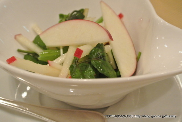 りんごのサクサクと新芽の柔らかさがマッチ。食欲を高めてくれるサッパリサラダ。