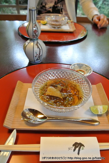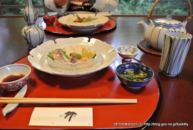 目でもたのしませてくれる素敵な演出。贅沢な広さのステキな和の空間に登場したお料理。