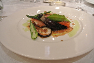 ★コリアンドル風味の夏野菜と赤座海老との饗宴 ブラックベリーのペースト添え