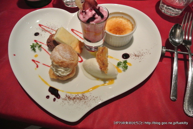 か、か、可愛いハートのお皿にデザート盛合わせが豪華です。