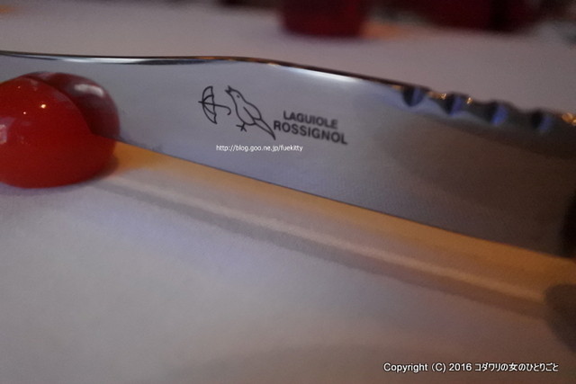 あんまり肉肉しいお肉やジビエが得意じゃないかこともあり、この形のナイフが出てくるとお肉が切りにくいのかなと身構える私です。