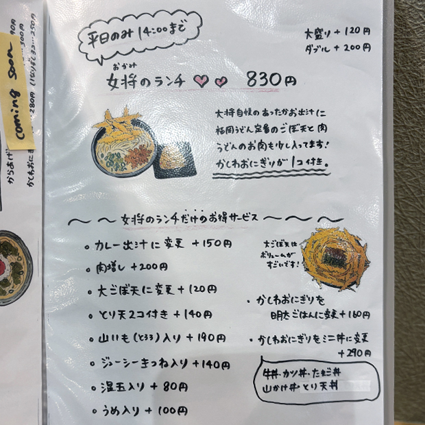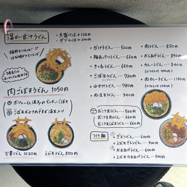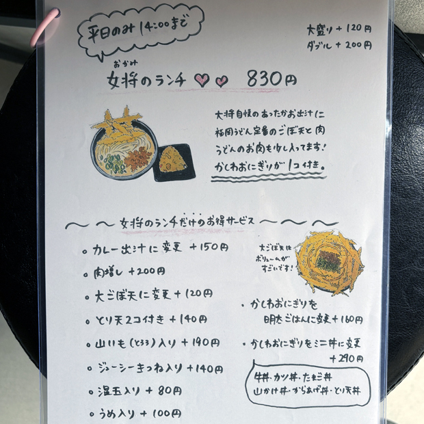 肉ごぼ天うどんの大盛をチョイスなのだ。