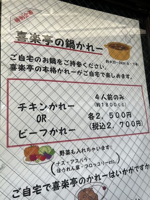 張り紙で、鍋でのテイクアウトカレーもできるらしい。カレー鍋持っていて、入れてもらうのもいいなー!