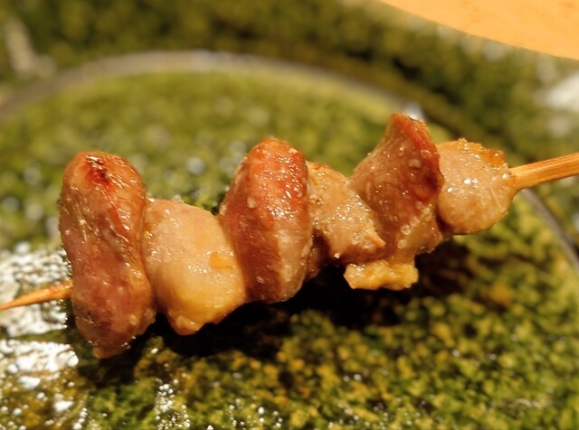 鶏はどれも筋肉質でぷりぷり、串は備長炭のスモーク香と鶏の芳ばしい香り、パリパリに仕上がった外部とふっくらジューシーなお肉の絶妙な火加減、鶏の旨味を引き出す上品な味も付いていて美味しかったです♡
