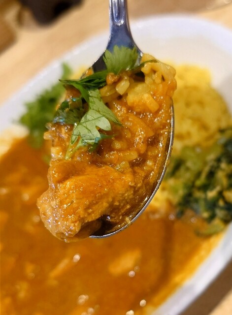 複雑なスパイスの中に際だった酸味があり、また店主にお尋ねしますと、こちらはタマリンド由来の酸味との事