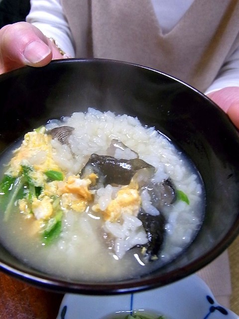 〆には、信じられない位、濃厚で贅沢な出汁が出ている寄せ鍋で作った雑炊。