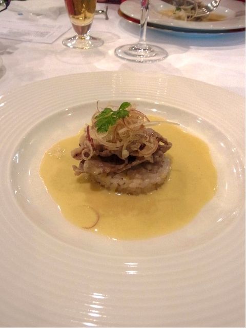 赤城和牛の薄切りとリゾット、カレー風味