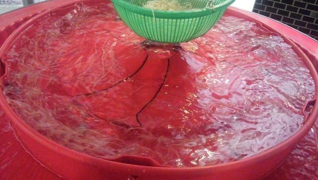 流し機の真ん中にそうめんを投入したら、そうめんが流れるのです。